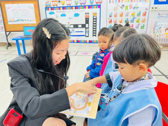 Through this program, I have gained valuable knowledge in the teaching field, particularly in different teaching strategies. One of the most remarkable approaches I observed was the use of real objects in the classroom, allowing students to experience firsthand what they are learning instead of just reading about it. This hands-on method truly amazed me, as I had not encountered it in the Philippines before going to Thailand. It showed me the importance of interactive and experiential learning in engaging young learners.